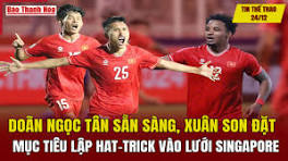 Tin thể thao 24/12: Doãn Ngọc Tân sẵn sàng, Xuân Son đặt mục tiêu lập hat-trick vào lưới Singapore (Baothanhhoa.vn) - Những thông tin chính: Doãn Ngọc Tân sẵn sàng thi đấu trận bán kết AFF Cup 2024; Xuân Son đặt mục tiêu lập hat-trick vào lưới ...